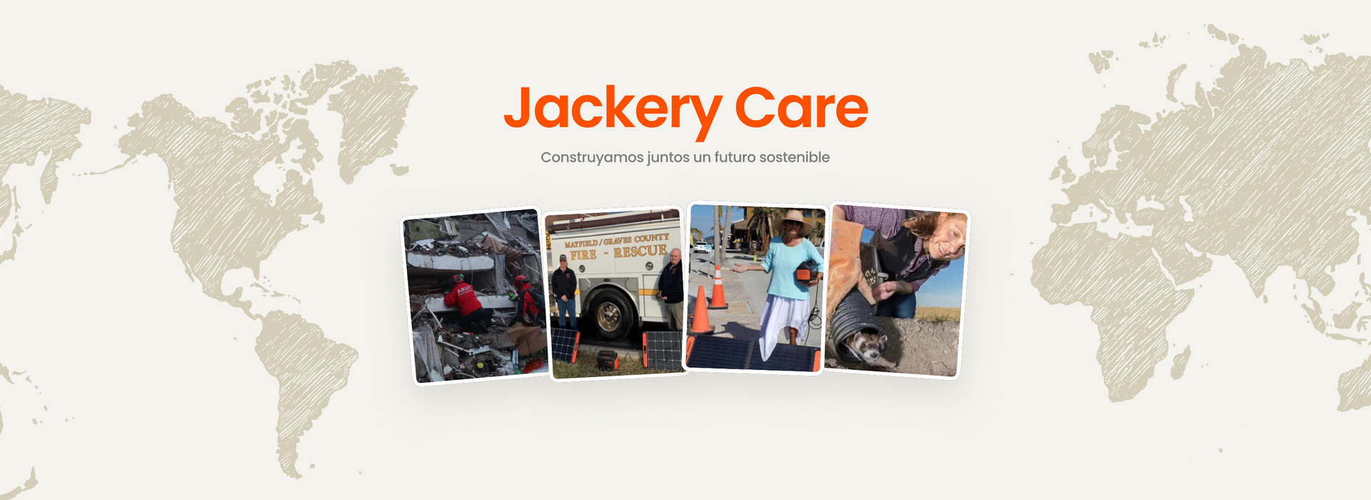 Como parte de la Responsabilidad Social Corporativa (RSC) de Jackery, Jackery Care está dedicado a la ayuda en desastres, las donaciones y las acciones sociales. Nuestro objetivo es construir comunidades más seguras y resilientes mediante la educación en preparación para desastres, el apoyo de emergencia oportuno y contribuciones continuas, no solo en tiempos de crisis, sino también en la vida cotidiana.