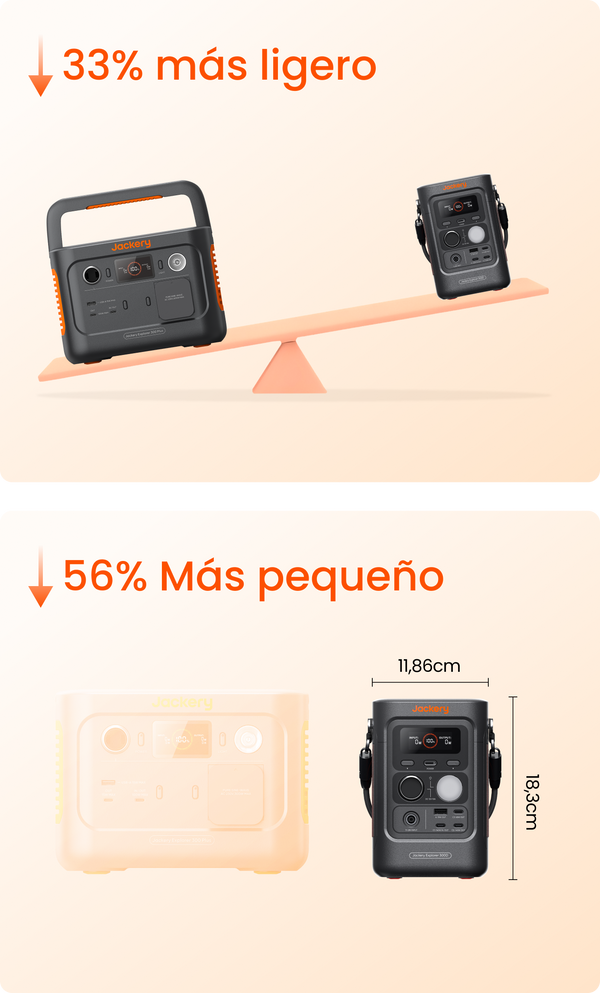 56 % más pequeño y 33 % más ligero que el Explorer 300 Plus