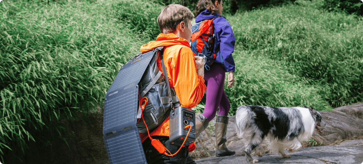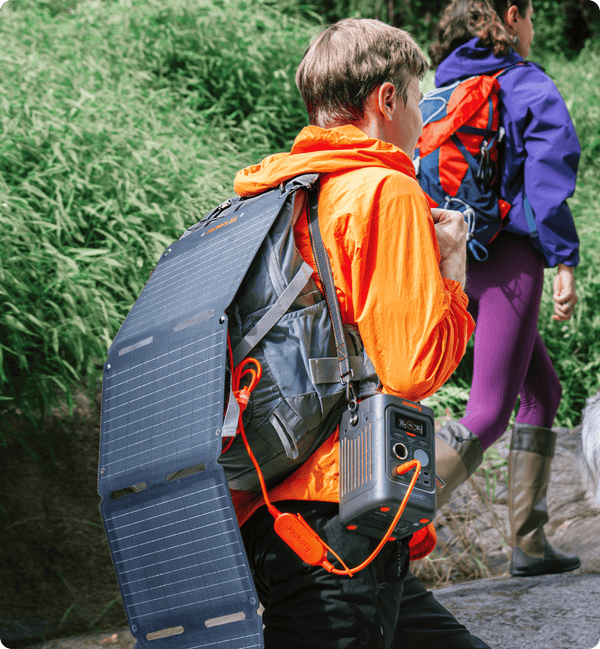 Combina el cargador portátil E300D con el compacto panel solar plegable de 40 W para recargar tu dispositivo de forma inteligente y sin esfuerzo allá donde vayas. Compacto, resistente y fácil de acoplar a una mochila o bicicleta, te proporciona energía solar constante allá donde te lleve tu aventura.